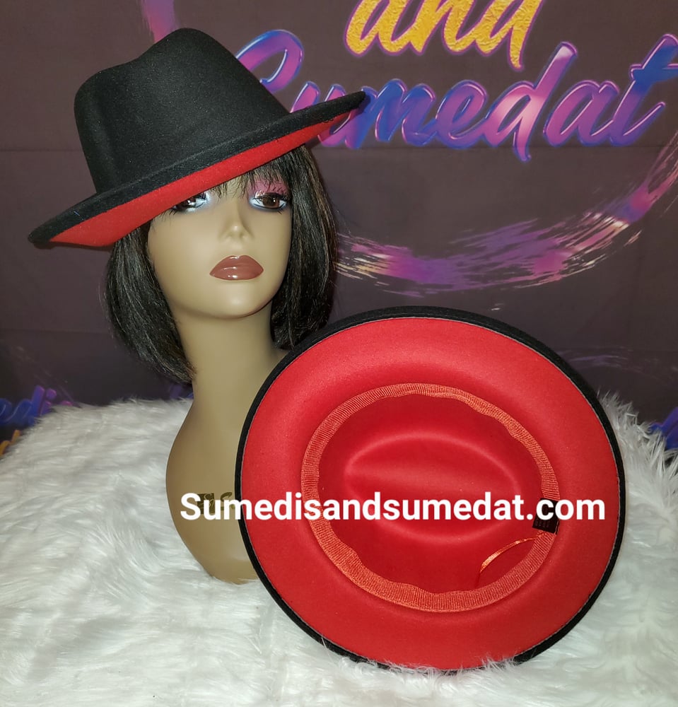 Image of Black/Red Upturned Jazzy Fedora Hats