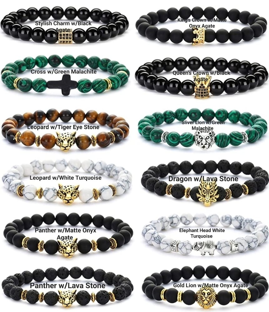 Lava Rock Stone Bead Bracelet Dragon/Lion/Panther Leopard Head Bracelet Charm Bracelets