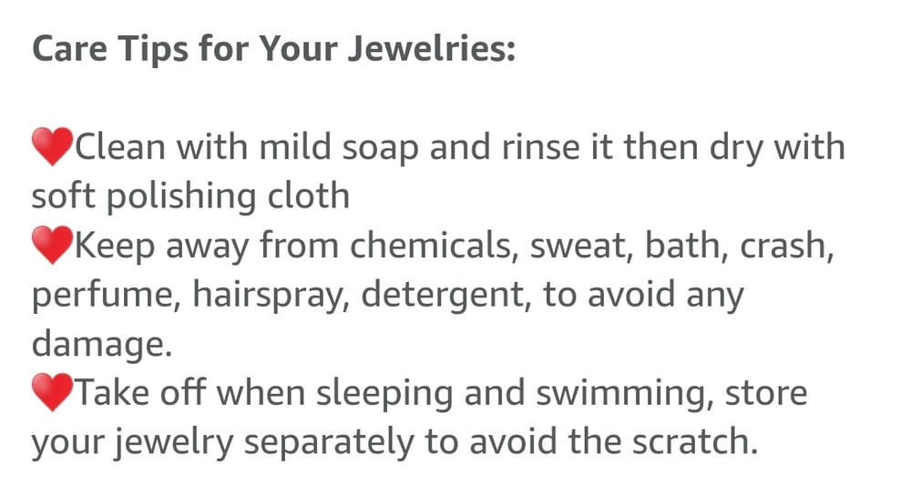 ♥ Take off when sleeping and swimming, store your jewelry separately to avoid the scratch.
